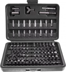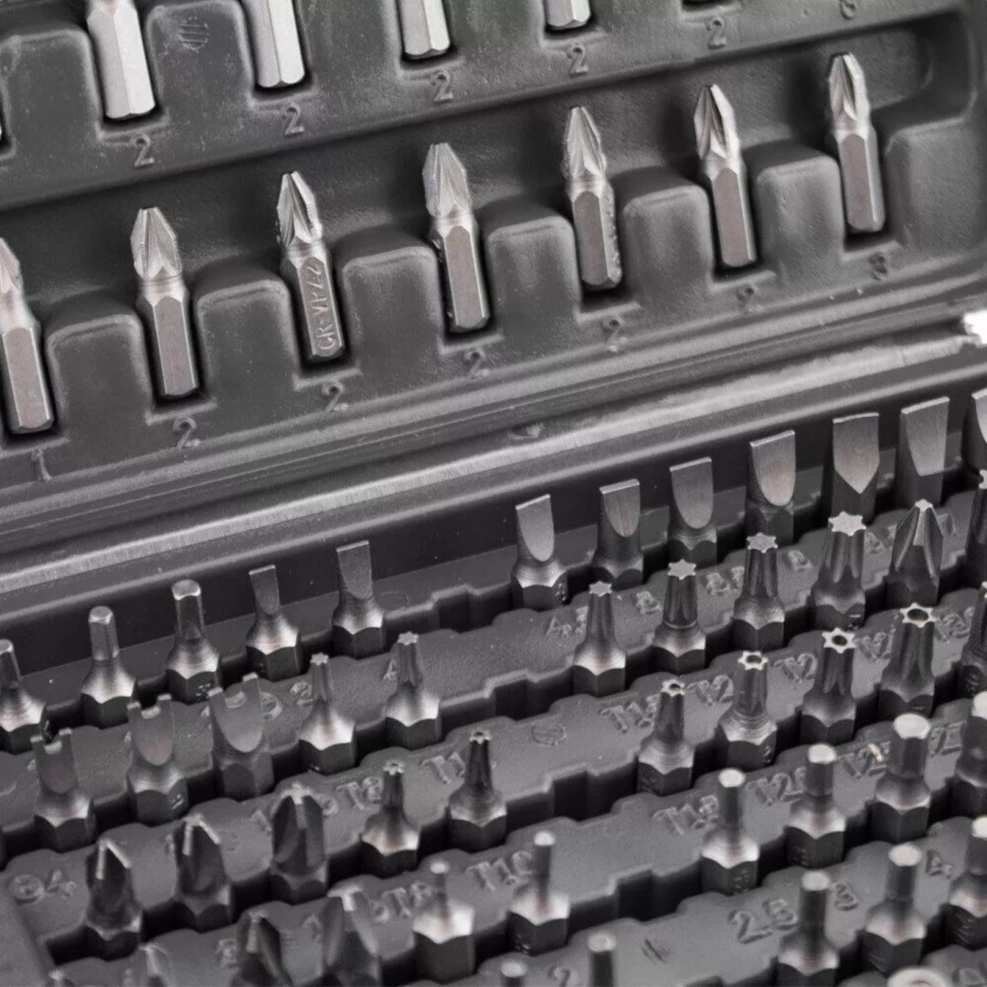 Acest set cuprinzător oferă o gamă largă de capete – plate, în cruce PH și PZ, TORX și TORX cu orificiu, imbus metric și în inci, biți de securitate tip tri‑wing, spanner, Robertson (SQ), XZN și altele. Oțelul rezistent asigură durabilitate și fiabilitate la montaj, service și reparații.