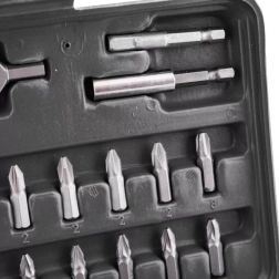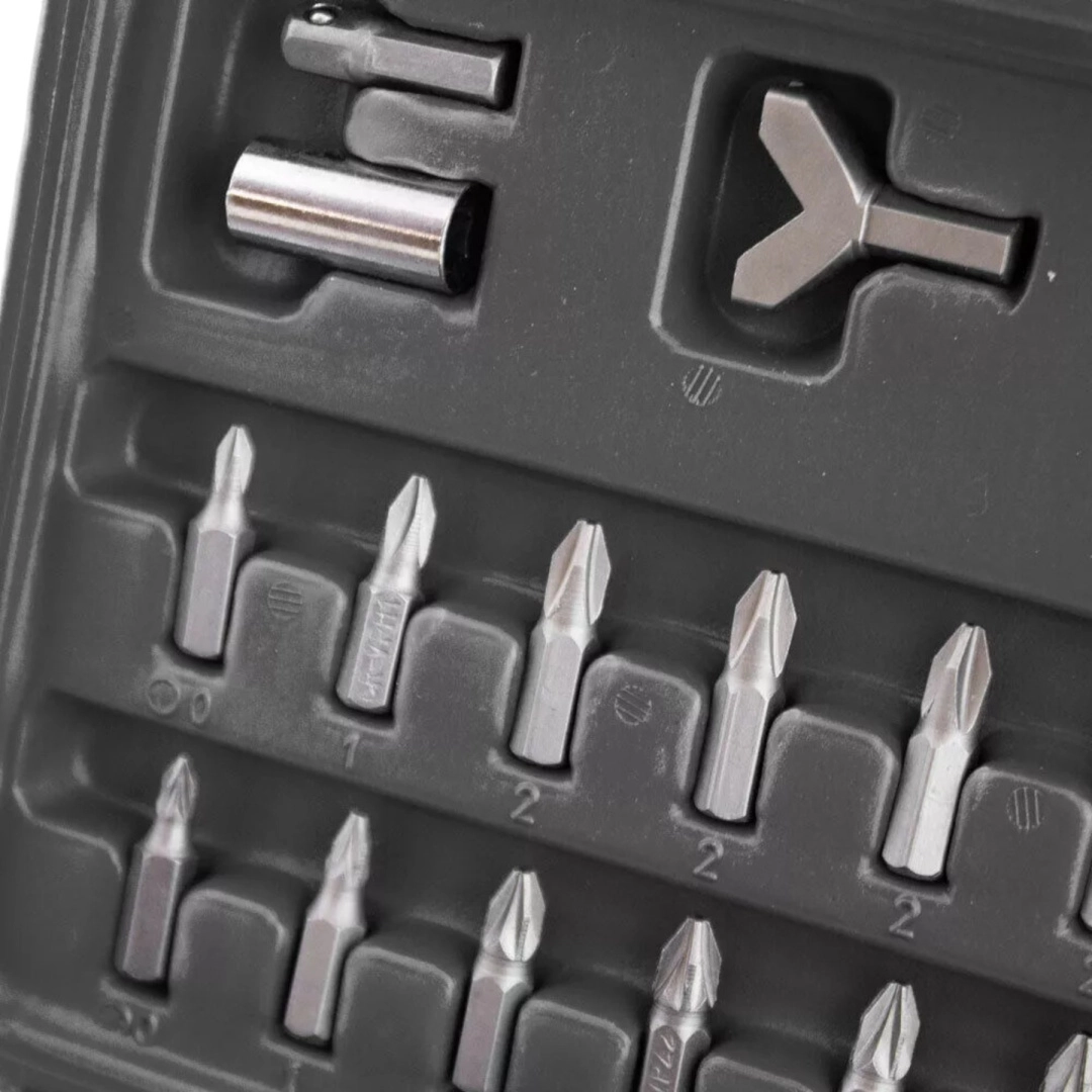 Carcasa din plastic solid păstrează fiecare bit la locul lui, astfel încât ai mereu ordine și acces rapid. Datorită dimensiunilor compacte, setul este ideal pentru atelier, mașină și călătorii.