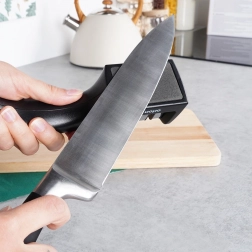 Ascuțitorul este ușor, durabil și ușor de folosit și depozitat – încape în orice sertar de bucătărie. Potrivit pentru cuțite de bucătărie drepte uzuale, de exemplu cuțite de bucătar, universale sau de tranșat, din inox sau oțel acoperit.