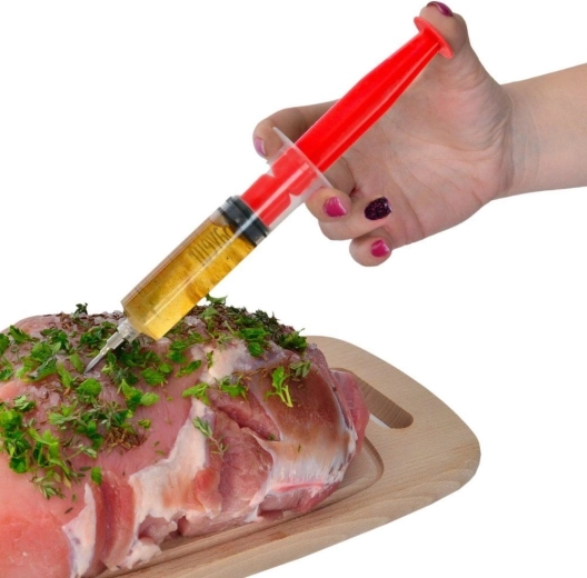 Seringa este fabricată din materiale sigure, adecvate pentru contactul cu alimentele. Pistonul este livrat în culori diferite (negru, roșu, alb) – expediem aleatoriu. Ideală pentru coacere, grătar, coacerea șuncii și afumare de casă, reducând timpul de marinare și îmbunătățind sărarea.