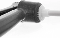 Dispozitivul practic de curățare, alb, îndepărtează ușor resturile din orificii. Ambele piese pot fi spălate în mașina de spălat vase.