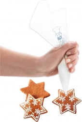 Ușurați decorarea deserturilor cu setul de pungi pentru cofetărie, care asigură aplicare comodă, curată și precisă a cremelor, glazurilor sau umpluturilor. Datorită materialului flexibil, reglați ușor presiunea, iar după tăierea vârfului stabiliți dimensiunea orificiului după nevoie.