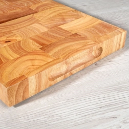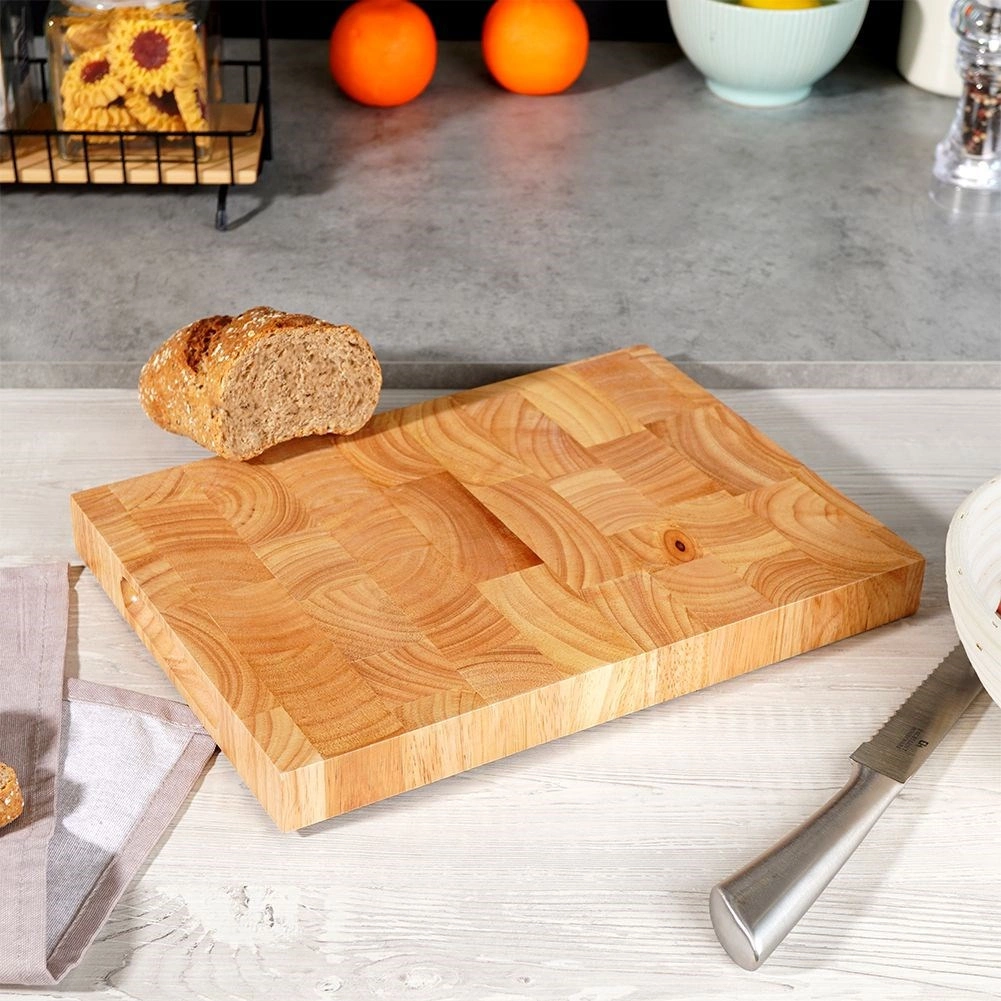 Acest tocător masiv din lemn de cauciuc oferă durabilitate excepțională, o viață lungă de utilizare și frumusețea naturală a lemnului. Construcția cu tăietură pe capătul fibrei minimizează uzura muchiei și ajută la menținerea suprafeței fără șanțuri adânci. Este ideal pentru tăierea zilnică a cărnii, legumelor și fructelor și servește la fel de bine ca suport stilat pentru servire.