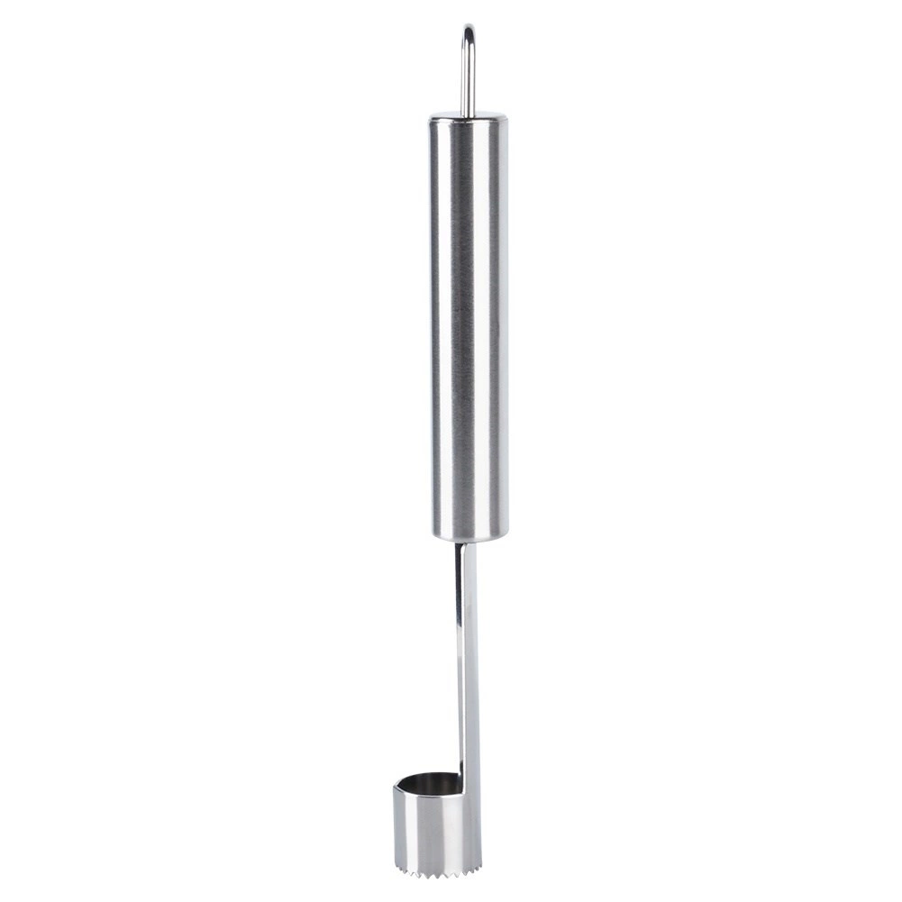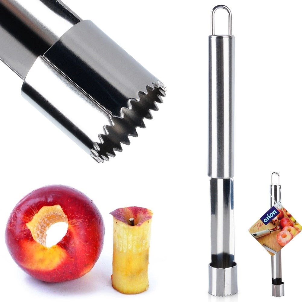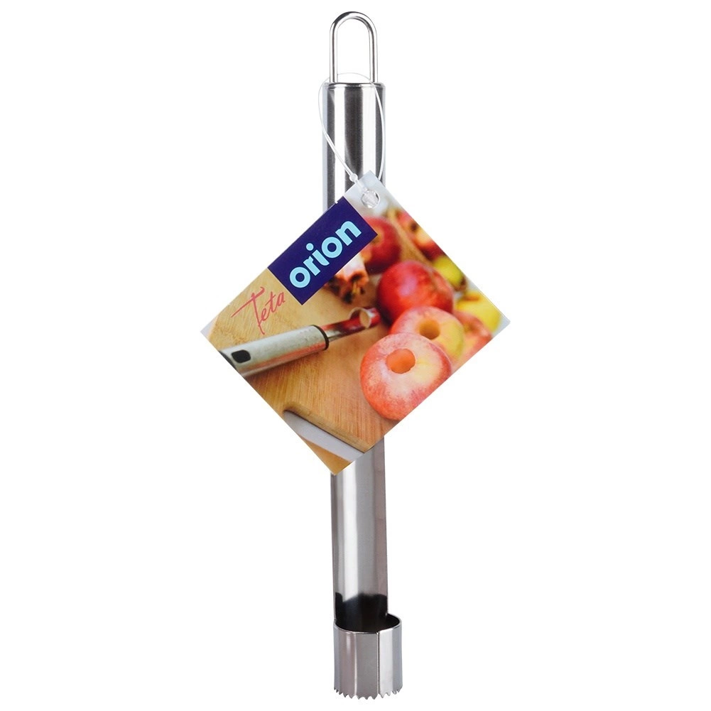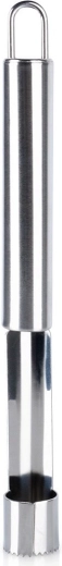 Acest decojitor/îndepărtător de cotoare din inox este un ajutor ideal pentru sarcinile zilnice din bucătărie. Printr-o singură introducere și rotire a coroanei zimțate îndepărtezi rapid cotoarele din mere și pere, pregătești fructele pentru umplere sau decorare și accelerezi prepararea ștrudelului, tartelor și deserturilor. Construcția integral metalică este igienică, durabilă și sigură pentru contactul cu alimentele.