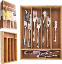 Păstrați ordinea în bucătărie cu elegantul organizator din bambus pentru sertar. Materialul natural se potrivește perfect atât în interioare moderne, cât și clasice, oferind totodată durată de viață îndelungată și rezistență la umiditate. Datorită compartimentării inteligente, veți avea mereu la îndemână tacâmurile și ustensilele mici.