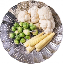 Datorită construcției ingenioase cu „petale” perforate, aburul circulă uniform, iar preparatele se gătesc rapid și fără grăsimi inutile. După utilizare, coșul se pliază ușor într-o formă compactă, ocupând un spațiu minim în bucătărie.