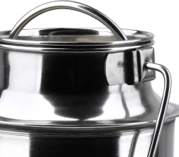 Această canistră rezistentă din inox pentru lapte, cu volum de 2,5 l, este un ajutor de încredere pentru utilizarea zilnică. Construcția solidă din oțel inoxidabil asigură rezistență la coroziune și o durată lungă de viață, iar capacul cu mâner protejează conținutul de impurități și insecte. Datorită mânerului practic, se transportă comod acasă, la cabană sau la camping.