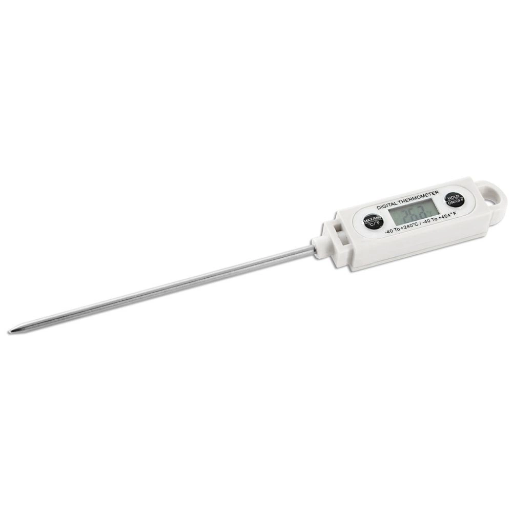 Termometrul electronic cu sondă de înțepare facilitează pregătirea fripturilor perfect gătite, coacerea cărnii, verificarea temperaturii laptelui sau a preparatelor pentru copii. Datorită afișajului LCD clar, vedeți instant temperatura curentă, iar sonda rapidă și precisă din oțel inoxidabil oferă rezultate fiabile atât în bucătărie, cât și la grătar.