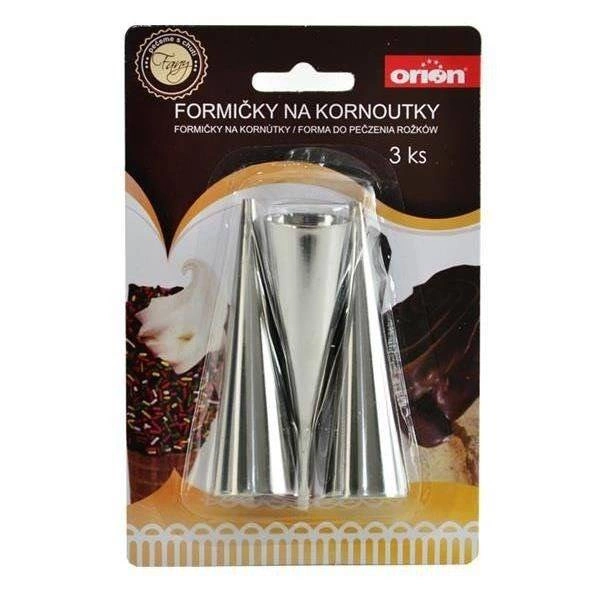 Cu aceste forme pentru cornete pregătiți cu ușurință rulouri umplute cu cremă, fructe sau umplutură cu brânză. Sunt ideale pentru aluaturi foietaj, dospite și alte tipuri de aluaturi, iar datorită oțelului inoxidabil robust vă vor servi mulți ani. Produs original marca ORION, conform standardelor europene de calitate.