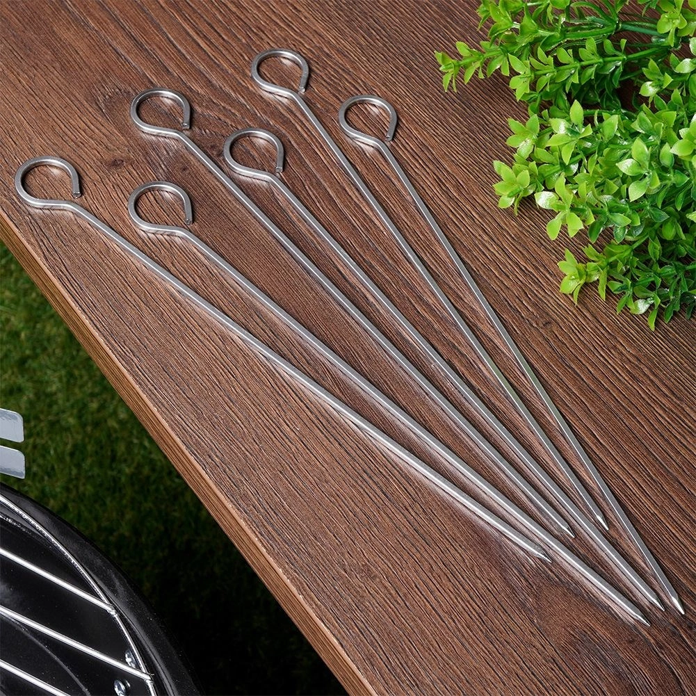 Bucurați-vă de un grătar curat și uniform cu frigărui plate din oțel, de 23,5 cm. Sunt ideale pentru carne, legume și șașlîc, își păstrează perfect forma, iar datorită buclei le rotiți ușor deasupra căldurii și la servire. Potrivite și pentru coacere în cuptor.