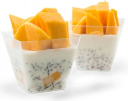 Datorită plasticului robust, sunt ușoare, rezistente la spargere și pot fi folosite din nou după spălare. Porțiile igienice sunt apreciate la conferințe și în catering. Dimensiunea compactă este practică pentru mini deserturi și gustări.