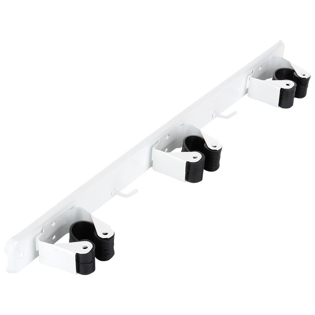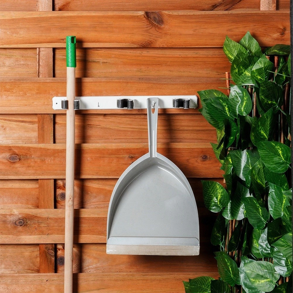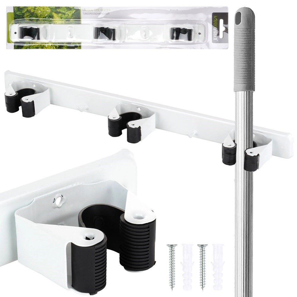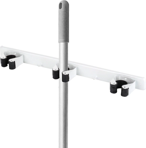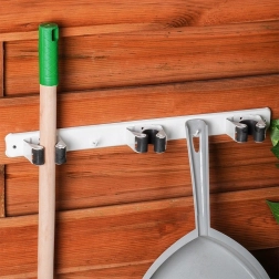 Fixează până la trei unelte cu coadă și, în același timp, oferă două cârlige pentru accesorii – cârpe, periuță de mână sau făraș.