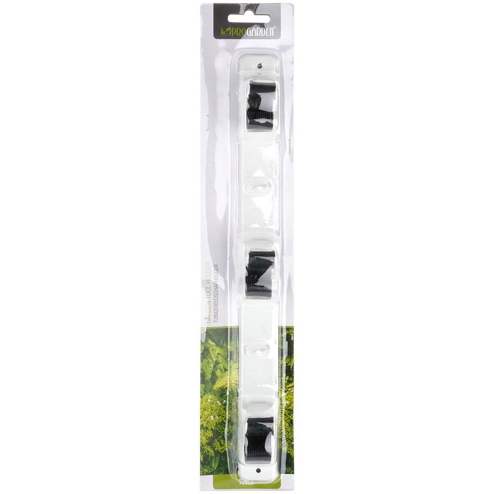Suportul de perete triplu PROGARDEN ajută la menținerea ordinii și la a avea totul la îndemână. Trei cleme automate cu arc țin ferm cozi de mop, mături sau greble, în timp ce două cârlige practice sunt utile pentru cârpe, periuțe de mână sau fărașe. Datorită combinației de metal solid și plastic rezistent, suportul este stabil, fiabil și potrivit pentru utilizare zilnică.