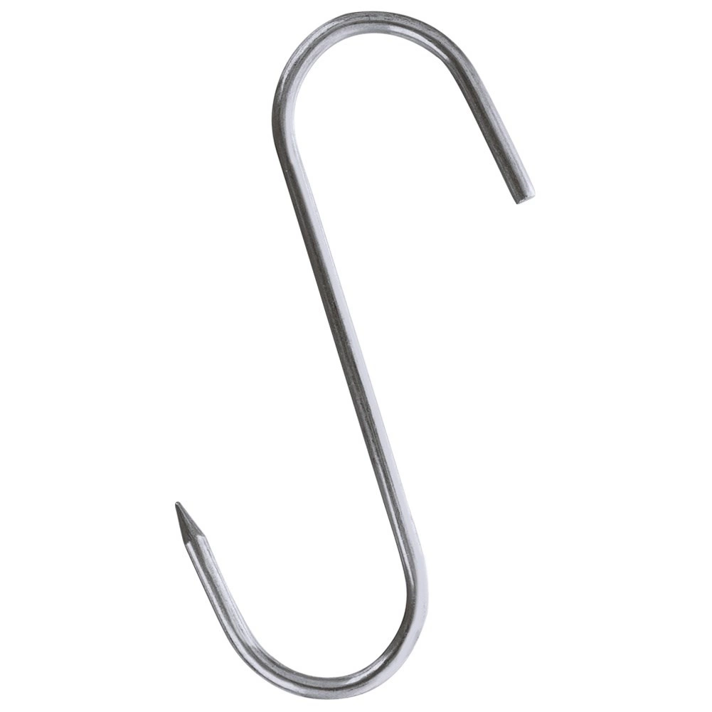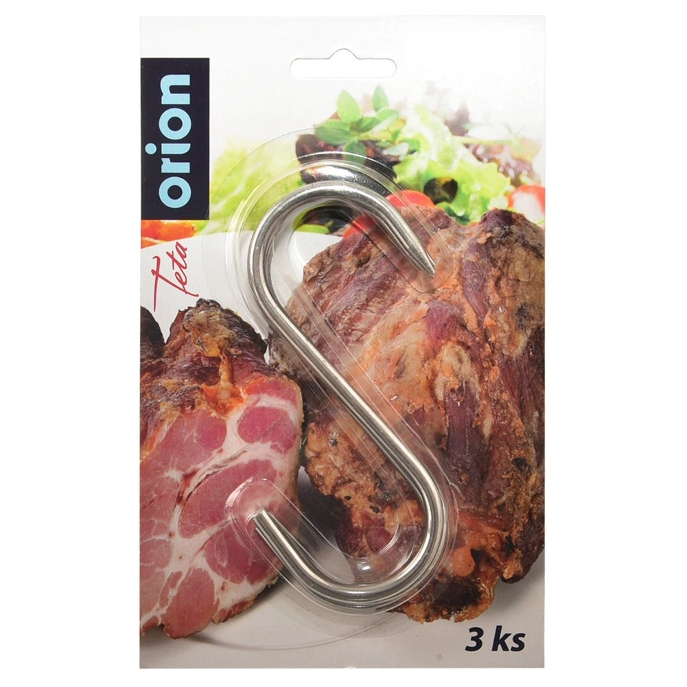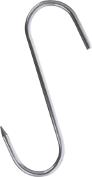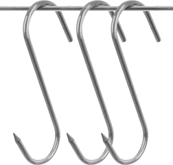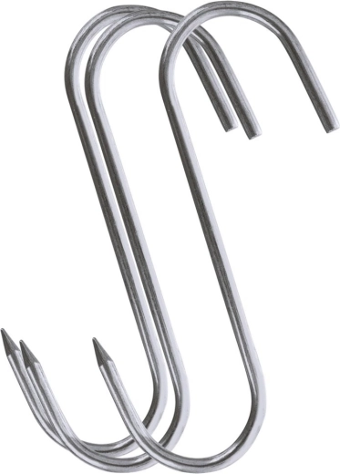 Set practic de trei cârlige în S din inox cu dimensiunile 11,5 × 8,5 cm și diametrul 0,5 cm pentru afumătoare și depozitarea produselor finite. Vârful ascuțit ușurează înțeparea cărnii, cârligele sunt rezistente la temperaturi ridicate, robuste și pot fi spălate în mașina de spălat vase. Ideale pentru afumarea și uscarea cărnii, cârnaților, peștelui și a altor mezeluri.