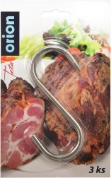 Set de trei cârlige robuste în S din oțel inoxidabil pentru agățarea comodă a cărnii, cârnaților sau peștelui în afumătoare. Datorită construcției deschise, permit circulația liberă a fumului pe toată suprafața și asigură afumare uniformă. Vârful ascuțit pe o parte facilitează înțeparea sigură și agățarea chiar și a bucatelor mai mari.