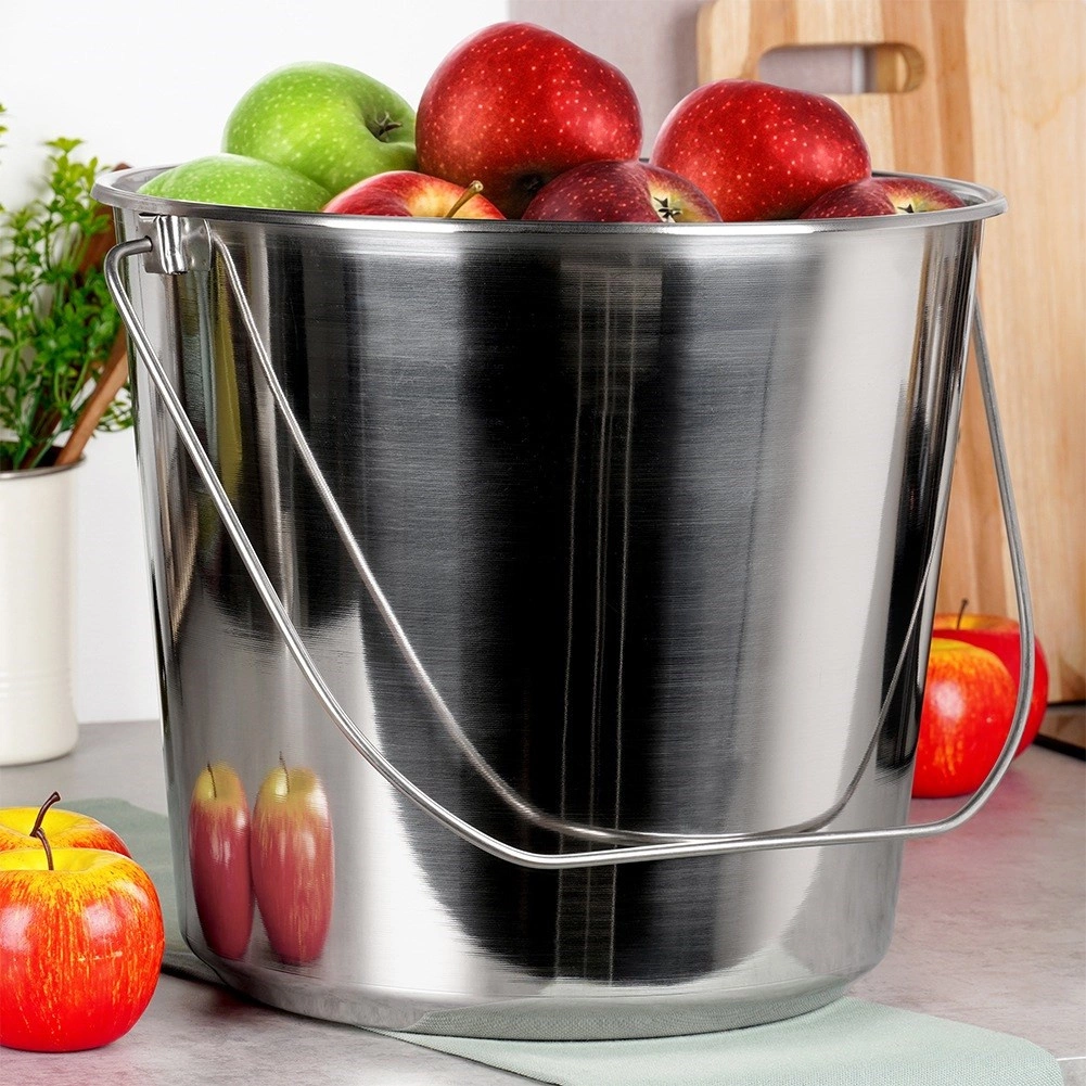 Potrivită pentru colectarea și transportul fructelor, păstrarea lichidelor și ca recipient decorativ în grădină. Datorită oțelului inoxidabil pentru uz alimentar, este ideală pentru bucătării și unități HoReCa. Întreținerea ușoară și durata lungă de viață fac din această găleată un accesoriu de încredere pentru orice utilizare.