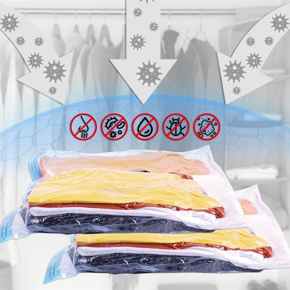 Sacul vidat este ideal pentru depozitarea sezonieră a hainelor, pernelor și păturilor, jucăriilor de pluș sau textilelor din dressing și dormitor. Prin evacuarea aerului, reduce semnificativ volumul obiectelor depozitate și creează mai mult spațiu în dulap, debara sau valiză.