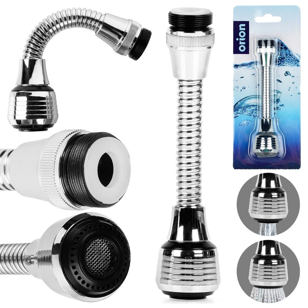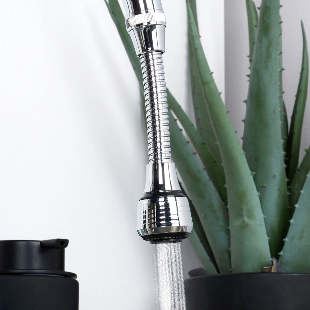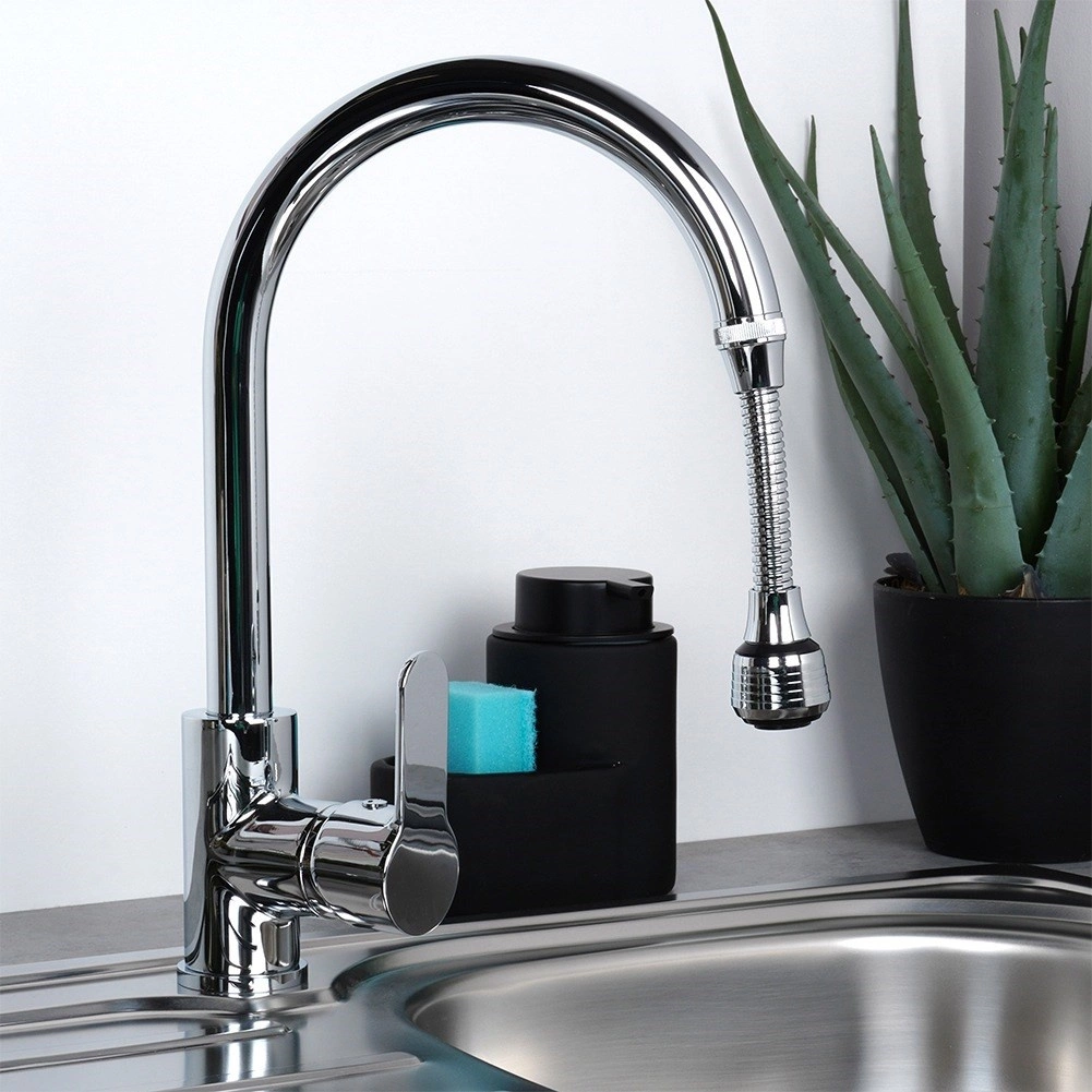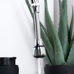 Gâtul flexibil tip gânsac permite direcționarea precisă a jetului și reduce stropirea. Conexiunea universală cu filet interior și exterior asigură compatibilitatea cu majoritatea bateriilor standard. Construcția durabilă în design argintiu‑negru este practică și ușor de întreținut.