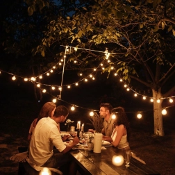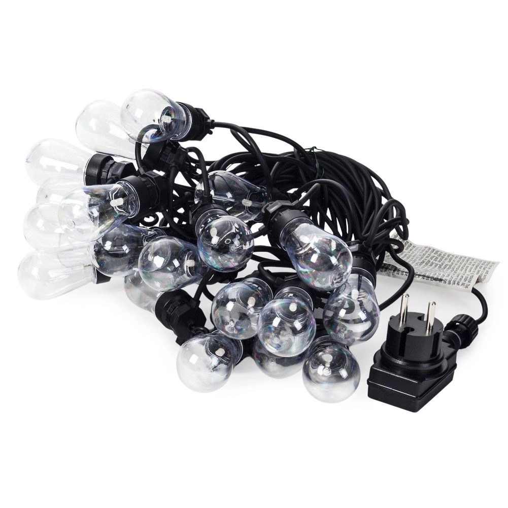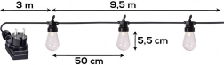 Fiecare soclu are un cârlig practic pentru instalare rapidă și sigură pe pergolă, gard sau crengile copacilor. Setul, ușor și ușor de întreținut, oferă distribuție uniformă a luminii datorită distanței de 50 cm între becuri și cablului de alimentare suficient de lung, de 3 m.