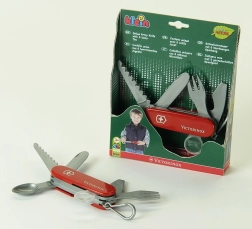 Această jucărie a fost proiectată cu accent pe calitate și detalii, pentru a semăna cu adevăratul cuțit elvețian de armată. Are un capac roșu cu logo Victorinox și este dotat cu un carabinier practic, care poate fi ușor atașat de exemplu la cureaua pantalonilor.