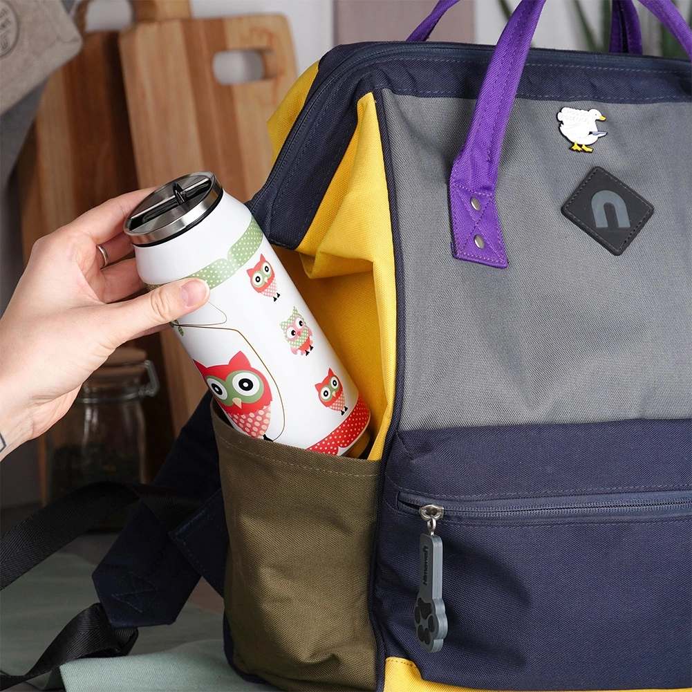 Bucură-te de băuturile preferate în cana termică cu un simpatic motiv de bufniță. Corpul metalic cu izolație vidată menține temperatura ore îndelungate, în timp ce capacul etanș previne scurgerile nedorite. Datorită gurii de băut și paiului integrat, poți bea confortabil chiar și în mers, în mașină sau prin oraș.
