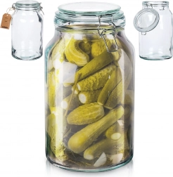 Acest borcan din sticlă cu volum mare și închidere tip clemă este ideal pentru utilizarea zilnică în bucătărie. Sticla groasă, clemele metalice de calitate și garnitura de cauciuc asigură o etanșare fiabilă, care protejează alimentele de umiditate și le prelungește prospețimea, gustul și aroma. Datorită gurii largi (12 cm), manipularea este comodă – îl umpleți ușor și îl curățați temeinic.