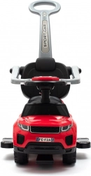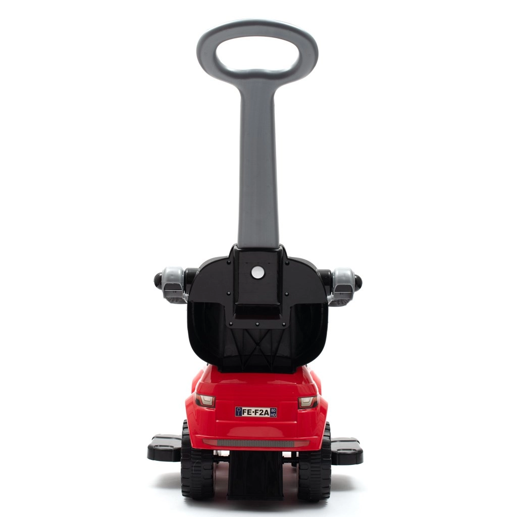 Pentru și mai multă distracție, pe volan se află un panou muzical cu 3 butoane cu melodii vesele și sunet de sirenă. Protecțiile laterale detașabile și suporturile inferioare pentru piciorușe oferă siguranță maximă în modul cu tija de ghidare. Sub șea se găsește o cutie practică pentru jucării mici și obiecte esențiale. Părinții vor aprecia mânerul înalt pentru ghidare confortabilă până când copilul capătă încredere.