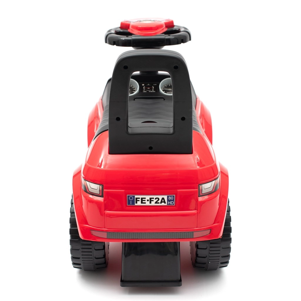 Trotineta fără pedale Baby Mix SUV, în design modern roșu, sprijină dezvoltarea motricității grosiere, a echilibrului și a coordonării. Datorită construcției robuste din plastic și finisajului mat, este ușoară, durabilă și ușor de curățat. Volanul cu butoane și melodii adaugă distracție și îi motivează pe copii la joacă activă.