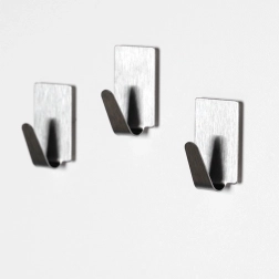 Cârlig minimalist cu bază dreptunghiulară, ideal pentru interioare moderne. Datorită oțelului inoxidabil de calitate, este rezistent la umiditate și la utilizare zilnică. Stratului autoadeziv îi datorăm fixarea fermă pe sticlă, oglinzi, faianță netedă sau pe blaturi de mobilier.