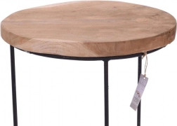 Setul de trei mese rotunde în dimensiuni diferite vă permite să reconfigurați ușor amenajarea spațiului. Blaturile masive din tec natural se remarcă prin fibra frumoasă și rezistență, în timp ce baza metalică stabilă, cu finisaj negru prin vopsire în câmp electrostatic, evidențiază aspectul industrial modern.