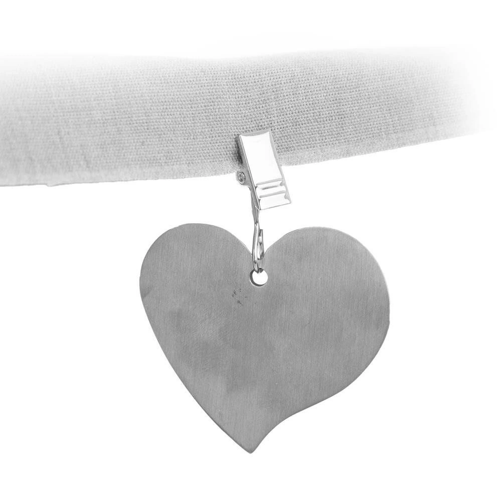 Descoperiți soluția elegantă împotriva fețelor de masă care flutură. Acest set de patru cleme/greutăți din oțel inoxidabil în formă de inimă fixează sigur fața de masă sau pânza/cearceaful cerat la locul ei și adaugă mesei dvs. un accent decorativ. Datorită execuției de calitate din oțel inoxidabil mat, rezistă mulți ani.