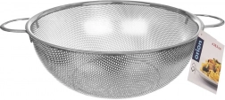 Această strecurătoare încăpătoare ANETT din oțel inoxidabil se remarcă prin plasa fină, care reține eficient alimentele și evacuează rapid apa. Datorită celor două mânere comode și picioarelor pentru poziționare stabilă, manevrarea este sigură și ușoară. Dimensiunile generoase de 36 × 28,5 × 11 cm permit strecurarea comodă a unor cantități mai mari de ingrediente dintr-o singură dată.