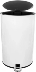 Coșul de gunoi elegant și funcțional, în culoare albă, este o alegere ideală pentru acasă și birou. Corpul metalic se curăță ușor, mecanismul cu pedală asigură igienă maximă fără atingerea cu mâinile, iar capacul cu închidere automată împiedică răspândirea mirosurilor nedorite.