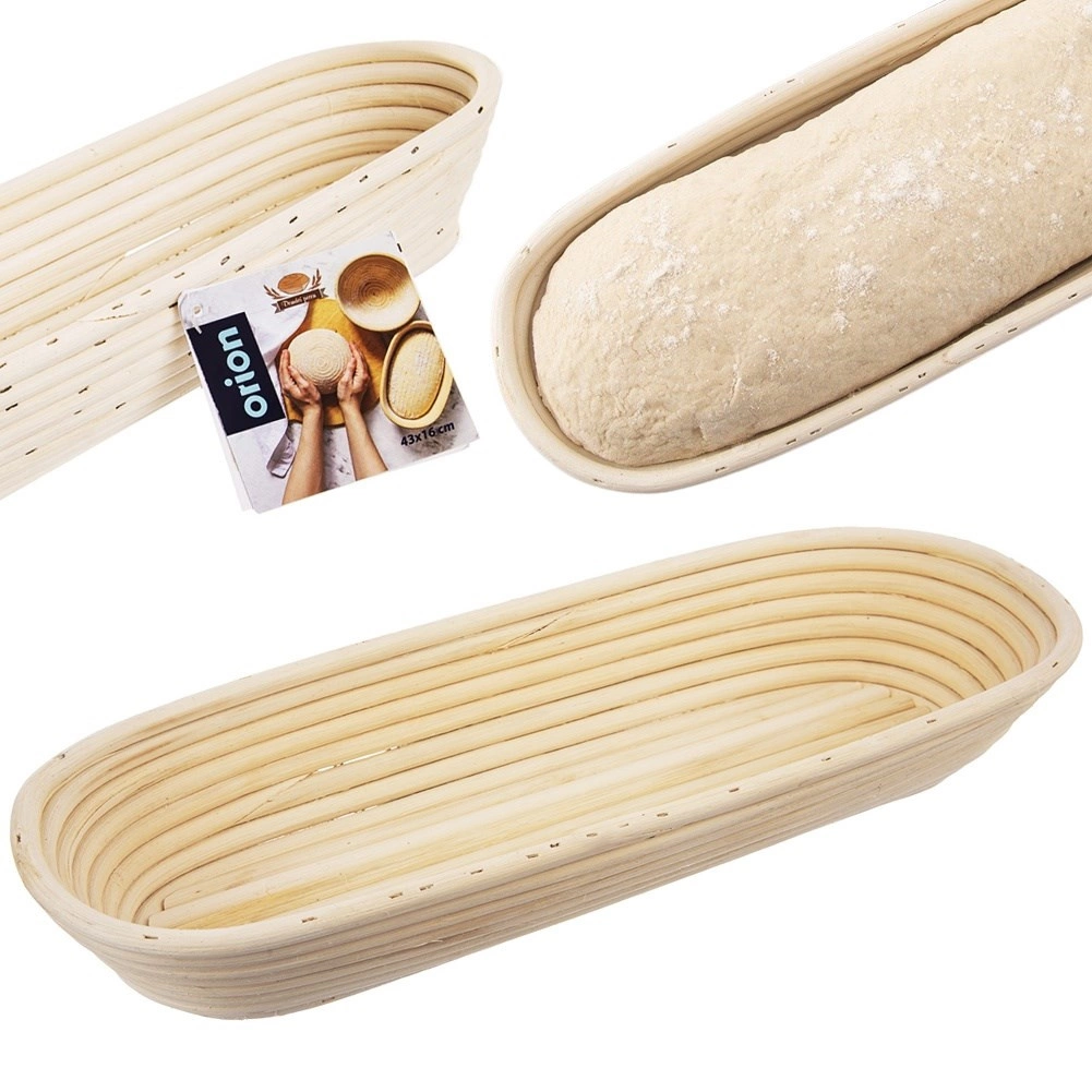 Dimensiunile 43 × 16 × 7 cm mențin aluatul în formă, împiedică lărgirea și facilitează răsturnarea pe tavă sau pe piatra de copt.