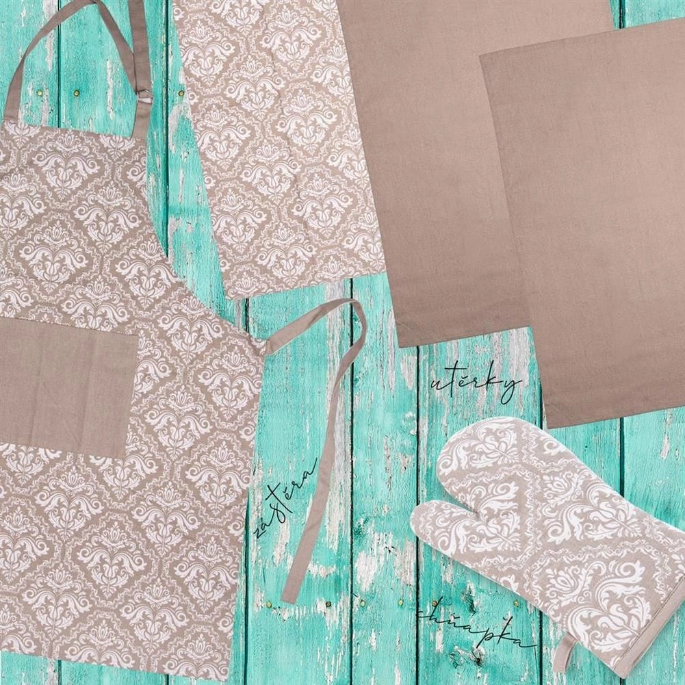 Descoperiți confortul și protecția la gătit cu șorțul din bumbac de calitate, cu dimensiunile 71 × 86 cm. Croiala universală, cu șnururi lungi, permite ajustarea ușoară pentru orice tip de corp, iar modelul damasc bej adaugă un aspect elegant bucătăriei dvs.