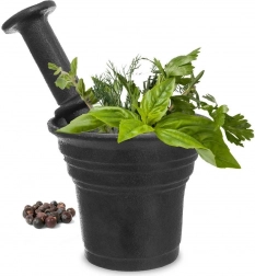 Greutatea și suprafața aspră a fontei garantează zdrobire rapidă și eliberarea maximă a gustului și a mirosului condimentelor.