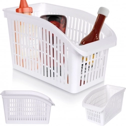 Acest organizator universal ajută la aranjarea clară a sticlelor cu sosuri, fructelor, legumelor și altor alimente în frigider, cămară sau dulap. Construcția deschisă și perforată asigură circulația aerului pentru o prospețime mai bună și verificare vizuală rapidă a conținutului. Materialul robust, dar ușor, este ideal pentru utilizare zilnică.