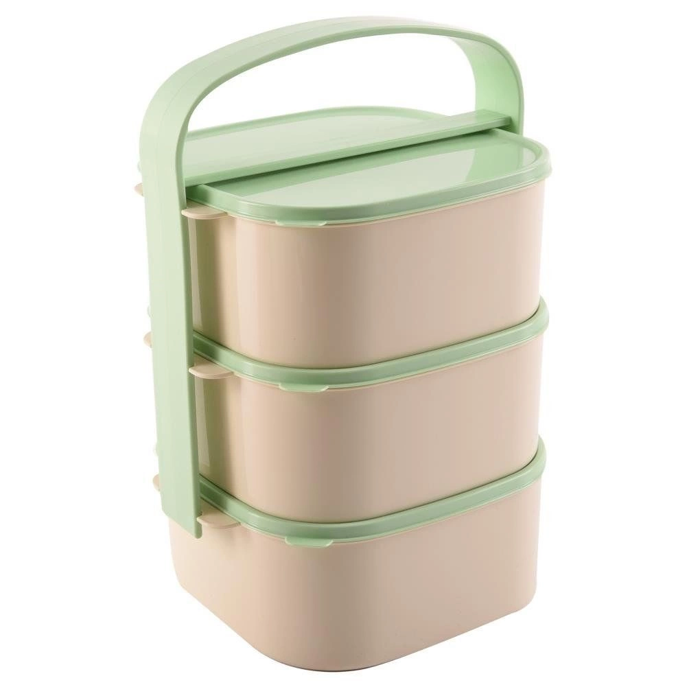 Mânerul fixează ferm toate cele trei recipiente ale menajerei, reducând riscul deschiderii accidentale și al vărsării conținutului în timpul transportului.