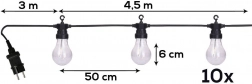 Cârlige integrate pentru agățare rapidă și cablu de alimentare de 3 metri de la priză la primul bec, pentru amplasare comodă.