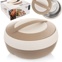 Termocastron practic cu volum de 2,5 l pentru păstrarea preparatelor calde și reci. Datorită stratului interior din oțel inoxidabil și închiderii ușoare cu capac cu mâner, menține mâncarea caldă până la 2 ore. Ușor, rezistent și ideal pentru transportul prânzurilor, supelor și deserturilor. Produs original marca ORION.