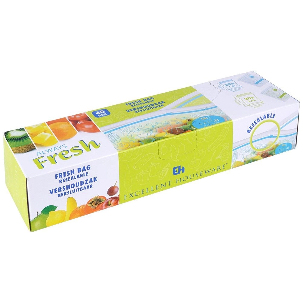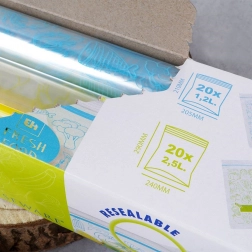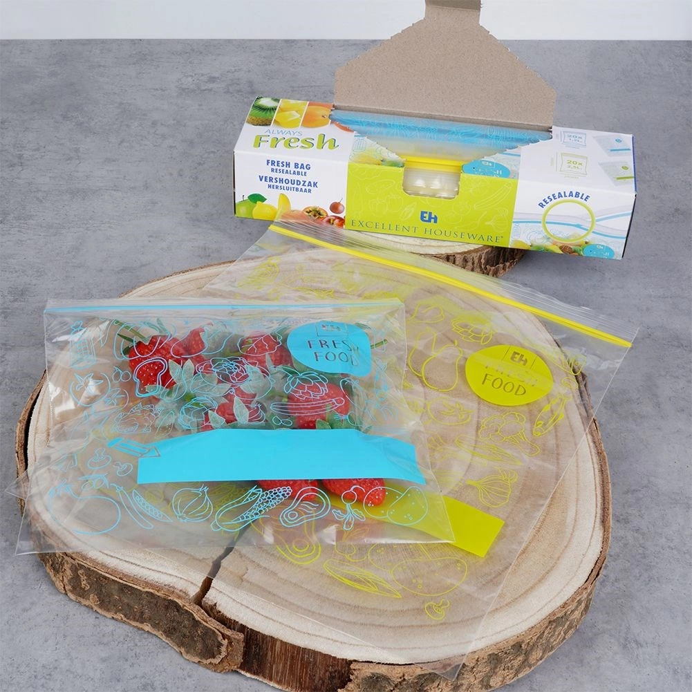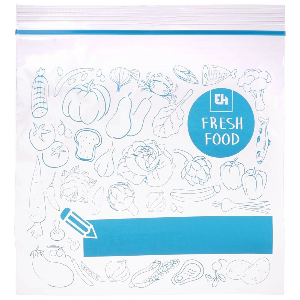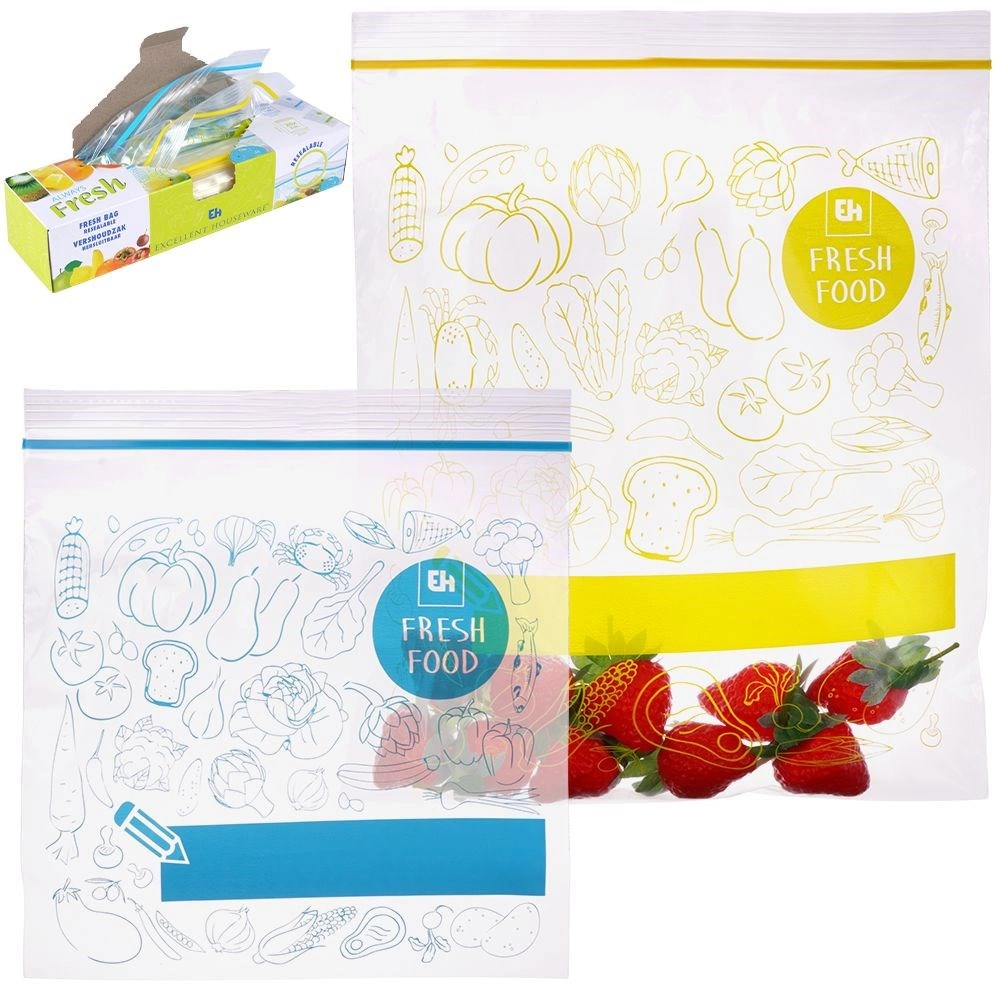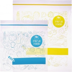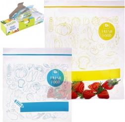 Păstrați alimentele proaspete mai mult timp cu setul universal de pungi cu fermoar în două dimensiuni. Datorită fermoarului dublu fiabil asigură o închidere etanșă și impermeabilă, sunt transparente pentru control rapid al conținutului și au zone colorate pentru etichetare. Excelente pentru fructe, gustări, ingrediente vrac și mărunțișuri din gospodărie.