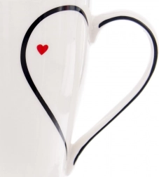 Porțelanul alb este pus în valoare de o linie neagră discretă și o mică inimă roșie. Designul minimalist se potrivește oricărei bucătării și bucură ca dar.