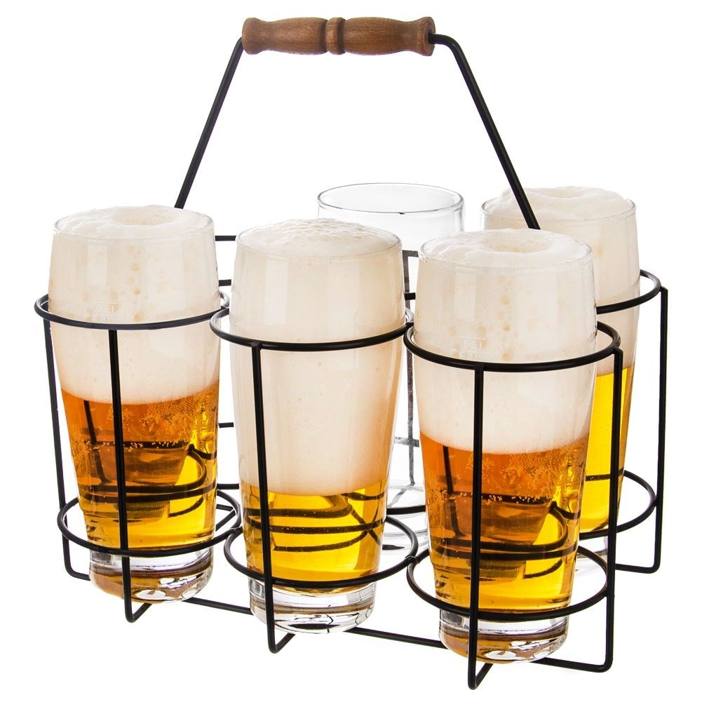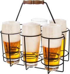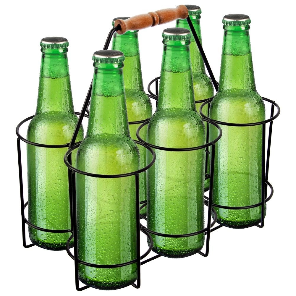 Suport metalic practic pentru sticle și pahare, cu 6 compartimente, separă în siguranță băuturile și previne ciocnirea lor. Datorită construcției metalice solide și mânerului confortabil din lemn, transportați cu ușurință până la 6 sticle – ideal pentru bere, grătar, grădină și excursii. Aspect stilat și stabilitate fiabilă pentru utilizare zilnică.