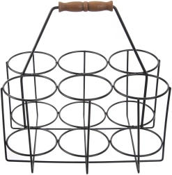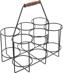 Coșul metalic rezistent pentru transportul sticlelor sau paharelor oferă organizare sigură și manipulare comodă. Șase suporturi circulare separate mențin recipientele ferm pe poziție, în timp ce mânerul din lemn asigură o prindere confortabilă. O soluție excelentă pentru casă, grădină, terasă și servirea băuturilor la grătar.