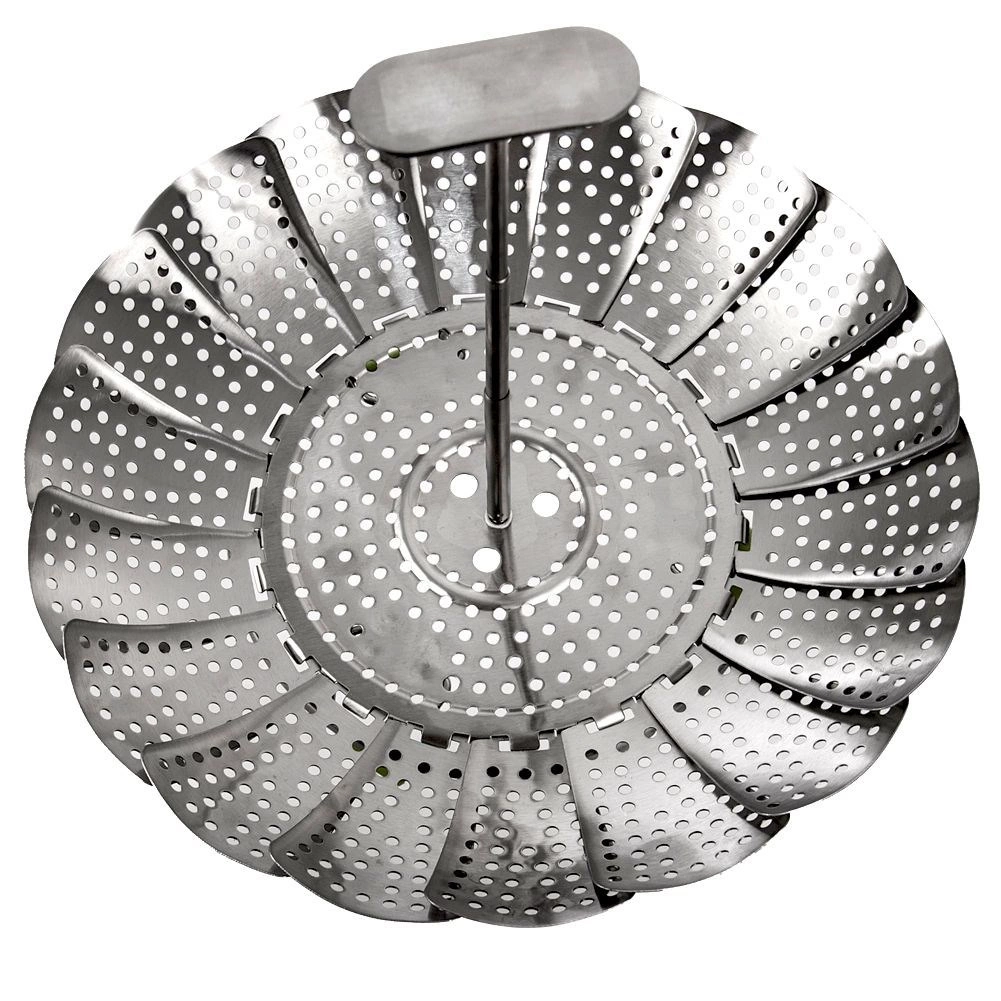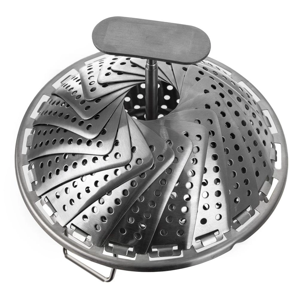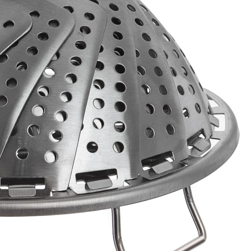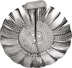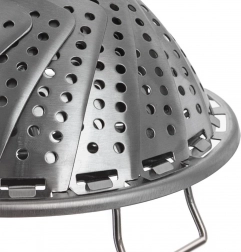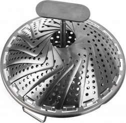 Coșul de abur pliabil, realizat din oțel inoxidabil de calitate, este ideal pentru prepararea alimentelor la abur. Diametrul extensibil de 14–23 cm permite utilizarea în oale de dimensiuni diferite, iar „lamele” perforate asigură o circulație uniformă a aburului și o gătire delicată a alimentelor.
