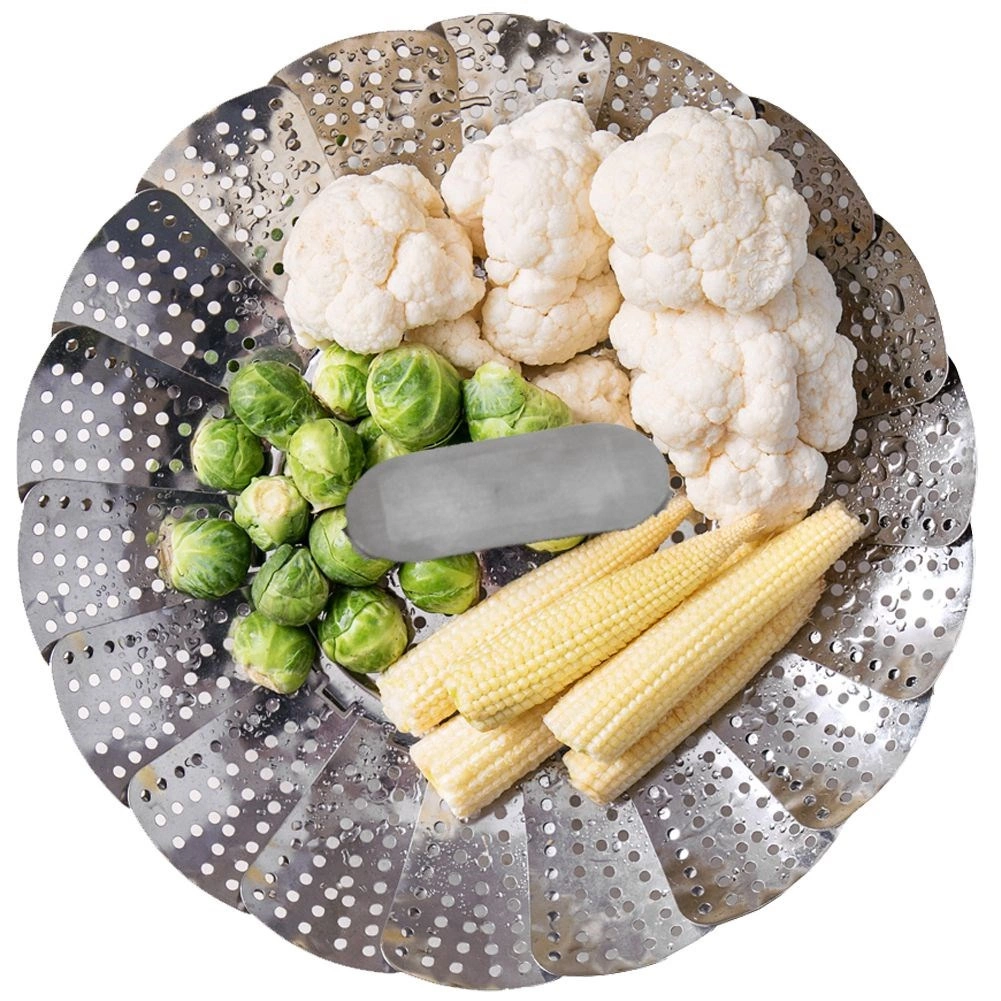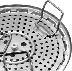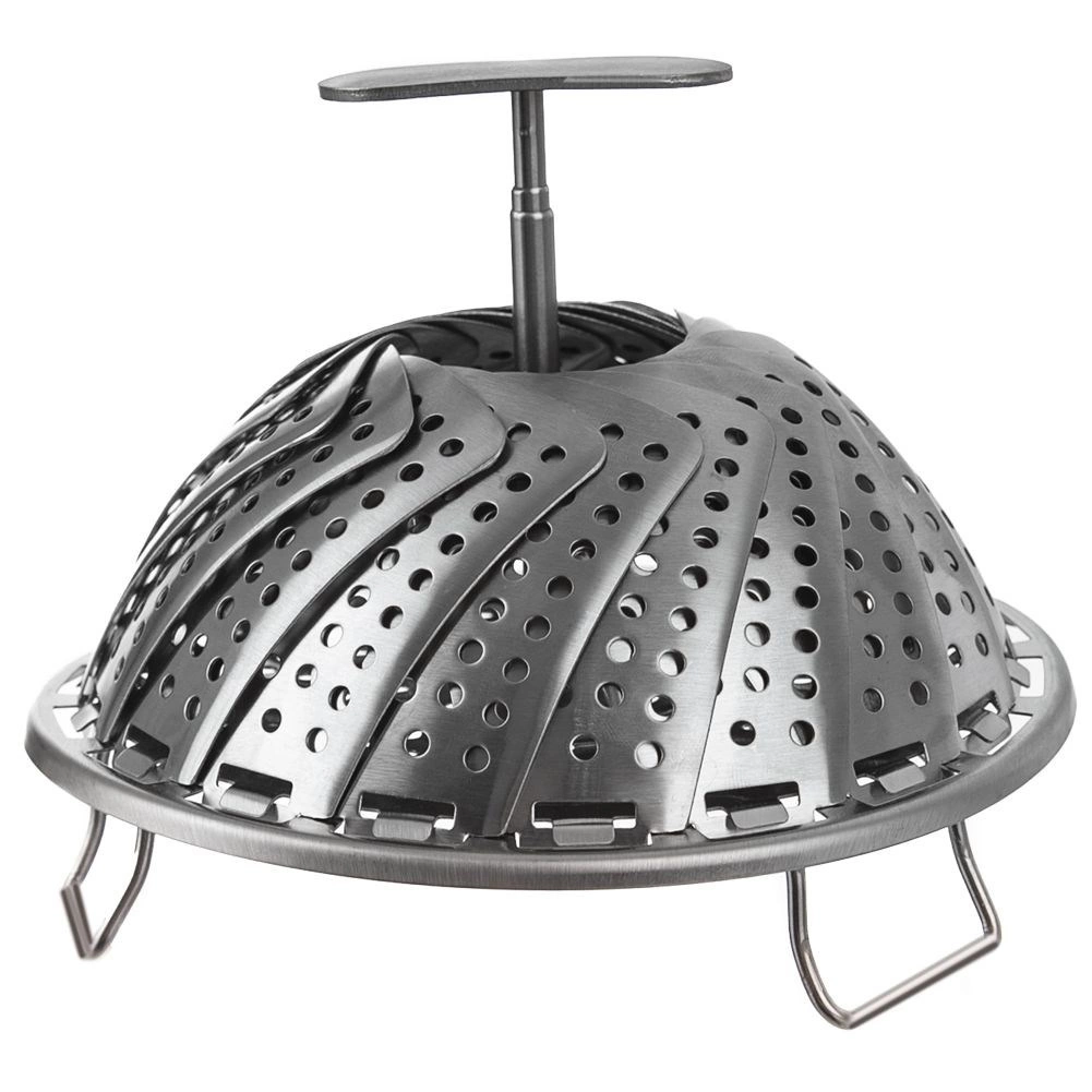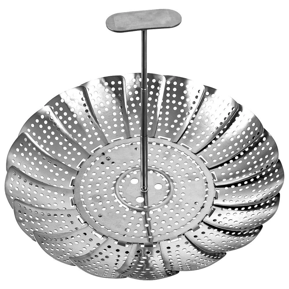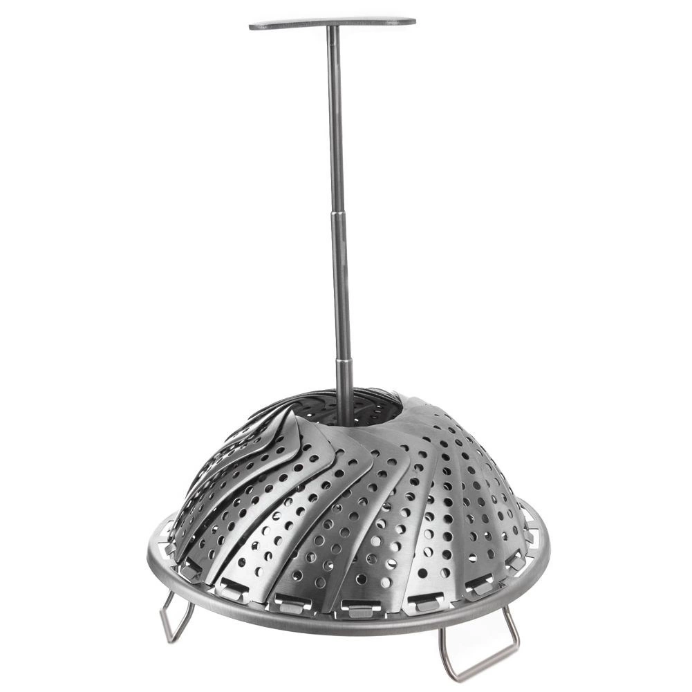 Coșul de abur pliabil, realizat din oțel inoxidabil de calitate, este ideal pentru prepararea alimentelor la abur. Diametrul extensibil de 14–23 cm permite utilizarea în oale de dimensiuni diferite, iar „lamele” perforate asigură o circulație uniformă a aburului și o gătire delicată a alimentelor.