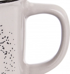 Această cană ceramică universală, albă, cu margine neagră și motiv cu râșniță de cafea, completează perfect bucătăria sau biroul tău. Datorită volumului de 370 ml, este ideală pentru cafeaua de dimineață și ceaiul de după-amiază. Forma simplă, atemporală, și glazura de calitate asigură utilizare confortabilă și durată lungă de viață.