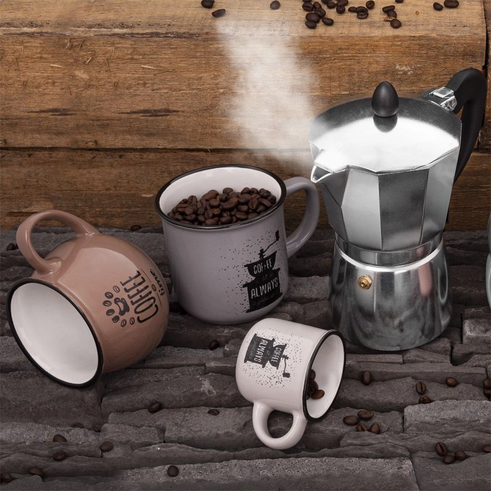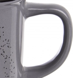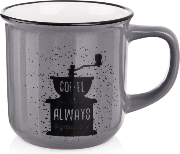 Această cană universală, din ceramică de calitate, este ideală pentru cafea, ceai, cacao și alte băuturi fierbinți. Execuția discretă în gri, cu imprimeu stilat cu râșniță de cafea, se potrivește atât bucătăriilor moderne, cât și celor rustice. Forma simplă, clasică, asigură utilizare confortabilă în fiecare zi.
