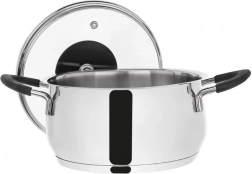 Gătiți supe, sosuri și garnituri eficient și cu rezultate excelente. Oala DALIE din oțel inoxidabil 304 (18/10) se remarcă prin construcția robustă, pereții groși și capacul din sticlă cu ventil de aerisire pentru controlul aburului. Datorită fundului akutermic multistrat, acumulează și distribuie uniform căldura, astfel gătiți mai rapid și mai economic.