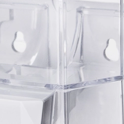 Combinația de plastic transparent și alb are un aspect modern și se curăță ușor, ideal pentru baie și bucătărie.